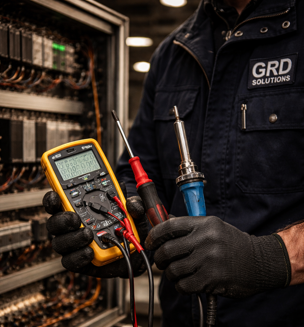 At GRD Solutions, our strength lies in a team of highly skilled engineers and technicians specializing in Industrial Electronics Repairs, Medical Electronics repairs, and crane safety device repairs. With years of hands-on experience across multiple industries, our team is committed to delivering precise diagnostics, fast turnaround times, and long-lasting repair solutions.